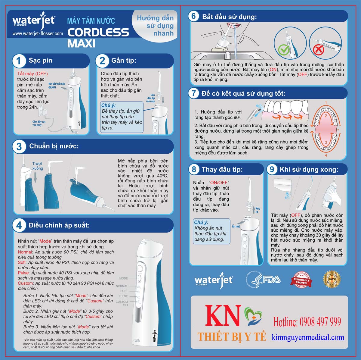 HDSD Máy tăm nước du lịch WaterJet Flosser Cordless Maxi WJ-900