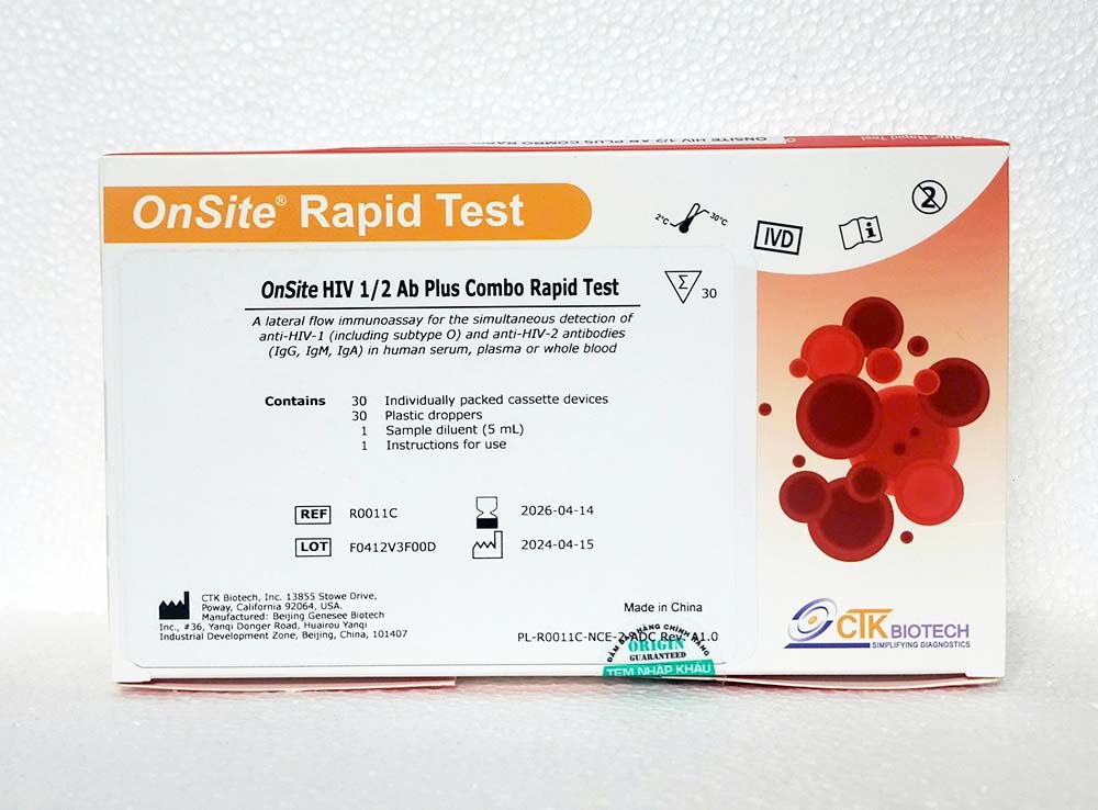 Khay thử xét nghiệm định tính kháng thể kháng HIV (OnSite HIV 1/2 Ab Plus Combo Rapid Test)